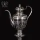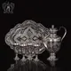 Оригинальный набор из серебра ручной работы состоит из графина для коньяка, четырех рюмок и овального подноса. Кубачинские мастера снова удивили своим мастерством и творческой фантазией: посмотрите на изумительную форму графина и рюмок, тонкий богатый узор в растительном стиле, украшающий каждый предмет. Гравировка, наложение черни и полировка использованы при создании дизайна, как всегда, на высшем уровне мастерства.