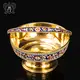 Вазочка "Графская" из серебра с позолотой и горячей эмалью от мастеров Кубачи покоряет изящной простотой и изысканным декором. Она выполнена в виде широкой чаши на невысоком широком основании, с круглой подвижной ручкой. В изделии нет ничего лишнего: позолота сияет внутри чаши и на основании, а снаружи чаша и ручка покрыты сплошным узором горячей эмали. Изумительная красота - словно цветочный луг поделился синими, белыми, голубыми и красными красками.