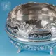Серебряная вареньица "Сеньора" относится к тем предметам кубачинского столового серебра, которые скорее несут эстетическую функцию, чем практическое назначение. Посмотрите - разве можно в этой красоте подавать варенье, мед, сахар к столу? Ею можно только любоваться: оригинальной овальной формой, изысканным резным орнаментом и растительным узором, выполненным гравировкой и наложением черни. чудесными ножками. Но на самом деле эта вазочка превосходно выполняет свою задачу как предмет посуды.