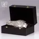 Большой кувшин для воды из серебра 925 пробы восхищает с первого взгляда - своим объемом на 2800 мл и изумительным орнаментом. Кубачинский мастер сотворил его при помощи гравировки, черни и полировки в виде изящной сетки, внутри каждой ячейки которой - сказочный листик. По горлу кувшина можно увидеть еще две ленты узора разных видов. Кувшин имеет крышку, также щедро украшенную орнаментом.