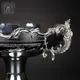 Вазочка для сладостей, фруктов или сухофруктов из серебра ручной работы от мастеров Кубачи - изысканная вещица, которая так и просится на стол в вашей столовой или кухне. Ну до чего она хороша! Превосходная форма и дизайн - все в ней гармонично и ласкает взгляд. Мастер сделал резной и невесомой верхнюю часть чаши в виде фигурного бортика, и такие же две изящных ручки. Необычно смотрится широкая ножка, а сияние полированного серебра служит украшением и акцентом. Небольшой узорный гравированный орнамент опоясывает чашу.