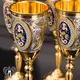Роскошный набор серебряных рюмок с позолотой и эмалью из Кубачи преобразит торжественную сервировку праздничного стола в любом формате - как семейном, так и официальном. Представьте, как великолепно будут смотреться сияющие золотом рюмки, как украсят общий вид стола изумительные вставки горячей эмали и сверкающий серебром узор с золотыми лепестками. Поистине имперский уровень!