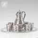 Серебряный набор для воды из Кубачи не только станет изысканным украшением интерьера вашей столовой или кухни. Пить из него воду, сок или компот очень полезно. А тонкая красота каждого из восьми предметов доставит эстетическое наслаждение. Посмотрите, как красивы линии кувшина и стаканов, как хорош овальный поднос, над которыми мастер трудился в техниках гравировки, черни и полировки. Богатый орнамент в растительном стиле щедро украшает изделия, завораживая виртуозностью работы.