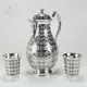 Дизайн этого серебряного кубачинского сервиза покоряет с первого взгляда: кувшин объемом 1400 мл и два стакана объемом 200 мл украшены чудесным узором, в котором геометрия гармонирует с нежным растительным орнаментом. Богатство гравировки, черни и полировки придают изделиям роскошный, поистине императорский вид. Такой сервиз будет уместен в любой столовой: подайте в нем свежую воду, сок или компот в летнюю жару – и наслаждайтесь всей семьей.