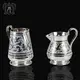 До чего приятно налить в этот изумительный серебряный молочник свежее молоко или густые сливки и поставить на стол – к чаю или кофе! И грустное настроение уйдет без следа, если выпить ароматный напиток, любуясь совершенным изделием кубачинских мастеров. Узор на сосуде выполнен в традиционном растительном виде и украшен мамонтовой костью. Конусовидная форма молочника смотрится оригинально, за ручку удобно браться, как и наливать молоко через высокий носик.