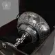Роскошная ваза ручной работы "Царица" от кубачинских ювелиров поражает изысканностью дизайна. Он представляет собой гармонию классической формы - широкой чаши на фигурной ножке и основании - и сложного узора нескольких видов. Посмотрите, как великолепна тонкая гравировка на чистом серебре, по которой идут резные ромбы-вставки! Узоры в растительном стиле разнятся между собой, придавая необыкновенное богатство вазе. Объемный узор вьется по краю чаши. Пояски темного цвета - здесь использовалось наложение черни - оттеняют сияние серебра.
