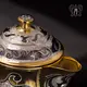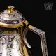 Серебряный набор для воды, состоящий из кувшина объемом 1,5 л и двух стаканов по 200 мл, подарит двойное наслаждение: чистым вкусом воды и изумительной красотой изделий. Роскошный узор настолько богат и тонко выполнен, что его можно рассматривать, как картину. Мастер вложил все свое искусство в создание превосходной формы кувшина и стаканов, а затем покрыв их драгоценной позолотой, благородной чернью, сияющей полировкой и изысканной гравировкой.