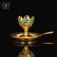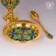 Среди богатого ассортимента столового серебра ювелирного дома "Апанде" есть немало уникальных предметов. К ним относится великолепный набор подарочный - пашотница на тарелочке с ложкой из серебра 875 пробы. декорированный золотом и горячей эмалью. Эксклюзивный дизайн, необычная красота и тонкая ручная работа делают набор скорее коллекционной вещью, чем аксессуаром для ежедневного использования. Солнечная позолота в гармонии с лазоревыми вставками горячей эмали придают праздничность и особое очарование предметам.