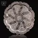Поднос серебряный "Александрия" - роскошный предмет столового серебра, с которым ваша коллекция будет выглядеть богаче и полнее. Кубачинские мастера создали уникальный дизайн изделия: фигурные края, узор нескольких видов, выполненный гравировкой, наложением черни и полировкой. Основным украшением служит символ солнца по центру подноса. Тонкую вязь сложного орнамента можно разглядывать, как старинную карту: с восхищением и уважением к мастерству ювелира.