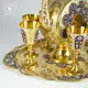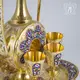 Все изделия – графин, шесть рюмок и поднос – покрыты солнечной позолотой и украшены великолепной цветной горячей эмалью, а также выгравированным на чистом серебре узором. Имея такой сервиз в своей коллекции столового серебра, вы будете достойно встречать гостей. К тому же такая красота станет яркой деталью интерьера столовой или кухни.