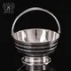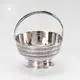 Вазочка из серебра предназначена для подачи конфет или сахара к столу. Ее название отвечает форме изделия: перед нами изящная корзинка с высокой круглой ручкой, чаша опирается на широкое снование. Мастера Кубачи украсили конфетницу интересным узором: между собой чередуются горизонтальные полосы орнамента - светлые и темные. Темный фон создало наложение черни, все полоски украшены тонкой гравировкой. Красивый, необычный декор, который подчеркивается сиянием полировки.