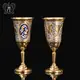 Бокалы из серебра с позолотой и горячей эмалью "Триумф" - превосходный образец кубачинского ювелирного искусства. Мастера придали им изящную форму при помощи филигранной монтировки, покрыли драгоценной позолотой, создали вставки горячей цветной эмали - яркий цветочный рисунок изумительно выделяется на фоне золота и серебра. Восхитительные изделия, достойные музейной экспозиции!