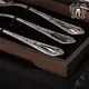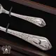 Такой изысканный комплект столовых ложек может достойно пополнить вашу коллекцию столового серебра, а также стать шикарным подарком на юбилей, свадьбу, день рождения. Ложки находятся в красивом деревянном подарочном футляре.