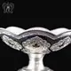 Серебряная ваза "Восток" ручной работы представляет семейство ваз для фруктов и сладостей от мастеров Кубачи. Выполнена ваза в классическом стиле: широкая чаша с фигурными краями, невысокая фигурная ножка и основание. Украшает наружную сторону чаши роскошный узор, выполненный при помощи гравировки и наложения черни. Внутри и снаружи изделие тщательно отполировано.