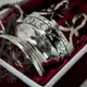 Наверное, это самый необычный подстаканник, который вы когда-либо видели. Название отражает его суть: необычные восточные узоры формируют оригинальный резной силуэт. Витиеватая ручка гармонично вписывается в общую концепцию изделия из восточной сказки. Этот изящный подстаканник выполнен из серебра 875 пробы мастером-ювелиром Мажидом Туллиевым. Филигранная гравировка, традиционная чернь, создавшие тонкий растительный узор, – мастер применил все классические для кубачинского столового серебра приёмы. А полёт фантазии привёл к рождению такой необычной формы подстаканника.