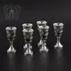 Кубачинские ювелиры постоянно пополняют ассортимент интернет-магазина "Апанде" новыми образцами столового серебра. Вот перед нами - набор серебряных рюмок "Встреча", который состоит из шести элегантных изделий. Небольшие рюмки для крепких напитков украшены узором, который удивляет своей оригинальностью. В нем преобладает чернь, поэтому рюмки выглядят благородно темными, и места с полировкой и гравировкой на серебре создают яркий контраст.