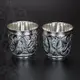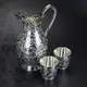 Великолепие кубачинского столового серебра в полной мере представлена в этом серебряном сервизе для напитков, состоящем из кувшина на 1500 ил и двух стаканов по 200 мл. Изумительна и форма каждого изделия, и богатый узор, выполненный мастером в техниках гравировки, наложения черни и полировки. Посмотрите на кувшин: его плавные линии, высокий полукруглый носик, изогнутая ручка полны грации и изящества. Стаканы поддерживают этот чудесный ансамбль из серебра 875 пробы.