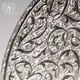 Традиционная тонкость ручной работы отличает это изящное серебряное блюдо. Орнамент украшает всю верхнюю плоскость изделия, представляя собой переплетение растительного узора, элементов наложения черни и дополнительной гравировки между ними. Тщательность, точность работы мастера завораживает: можно долго рассматривать и любоваться каждым миллиметром поверхности блюда.