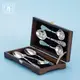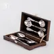 Такой изысканный комплект столовых ложек может достойно пополнить вашу коллекцию столового серебра, а также стать шикарным подарком на юбилей, свадьбу, день рождения. Ложки находятся в красивом деревянном подарочном футляре.