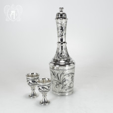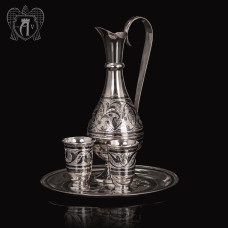 Каждый водочный набор включает изысканно украшенные стопки и графины, которые подчеркнут особый статус вашего застолья. Ручная гравировка и тонкие орнаменты придают наборам уникальность и эксклюзивность, превращая каждое изделие в произведение искусства. Серебряные водочные наборы идеально подходят для праздничных застолий, торжеств или могут стать великолепным подарком для ценителей красивой сервировки и традиционных напитков.