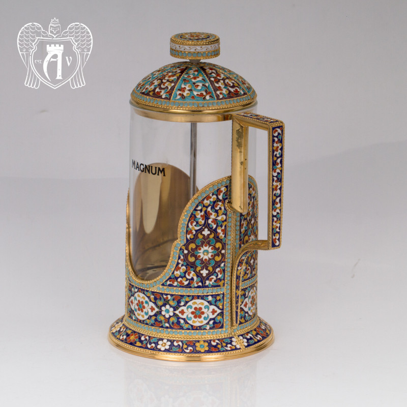 Qizil bilan bezatilgan va issiq emalli kumushdan yasalgan frensch-pres "Qissa".