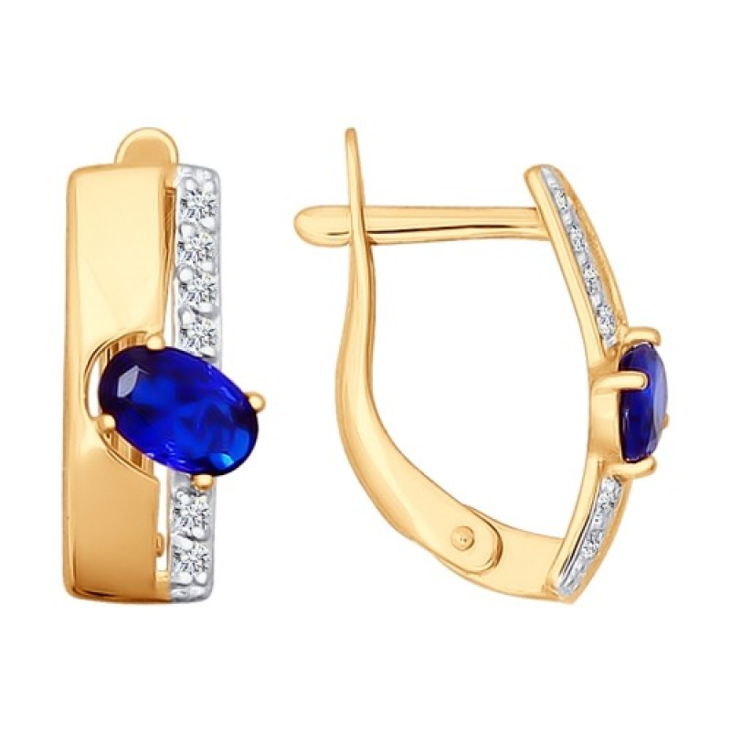 Серьги из золота с синими фианитами купить в магазине Апанде