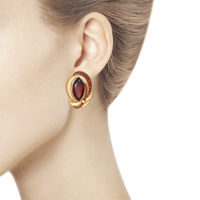 Серьги из золота с ситаллами и красными фианитами "Сияние заката" 6442