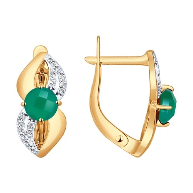 Серьги из золота с зелёными агатами купить в магазине Апанде